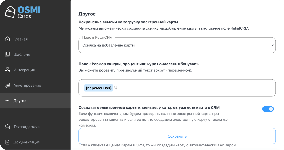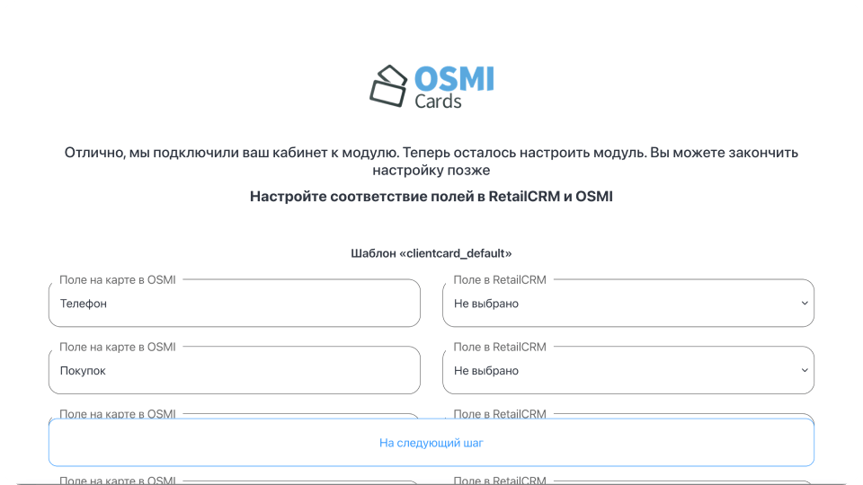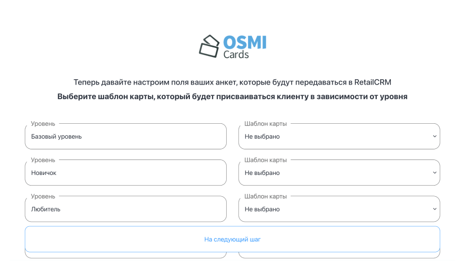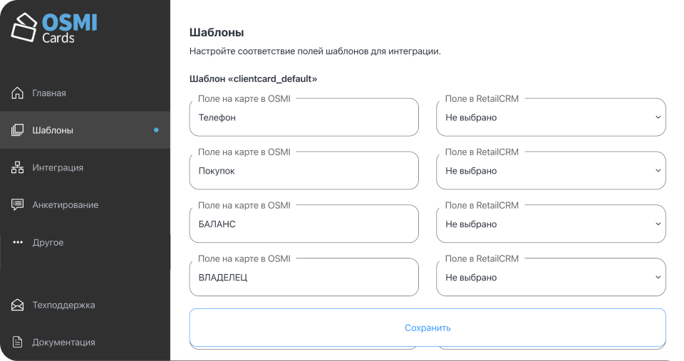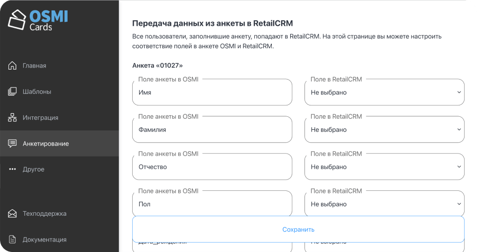 Мы создаем пользователя из вашего анкетирования в OSMI Cards, если настроено соответствие полей. Если его нужно изменить, это можно сделать в этом разделе.